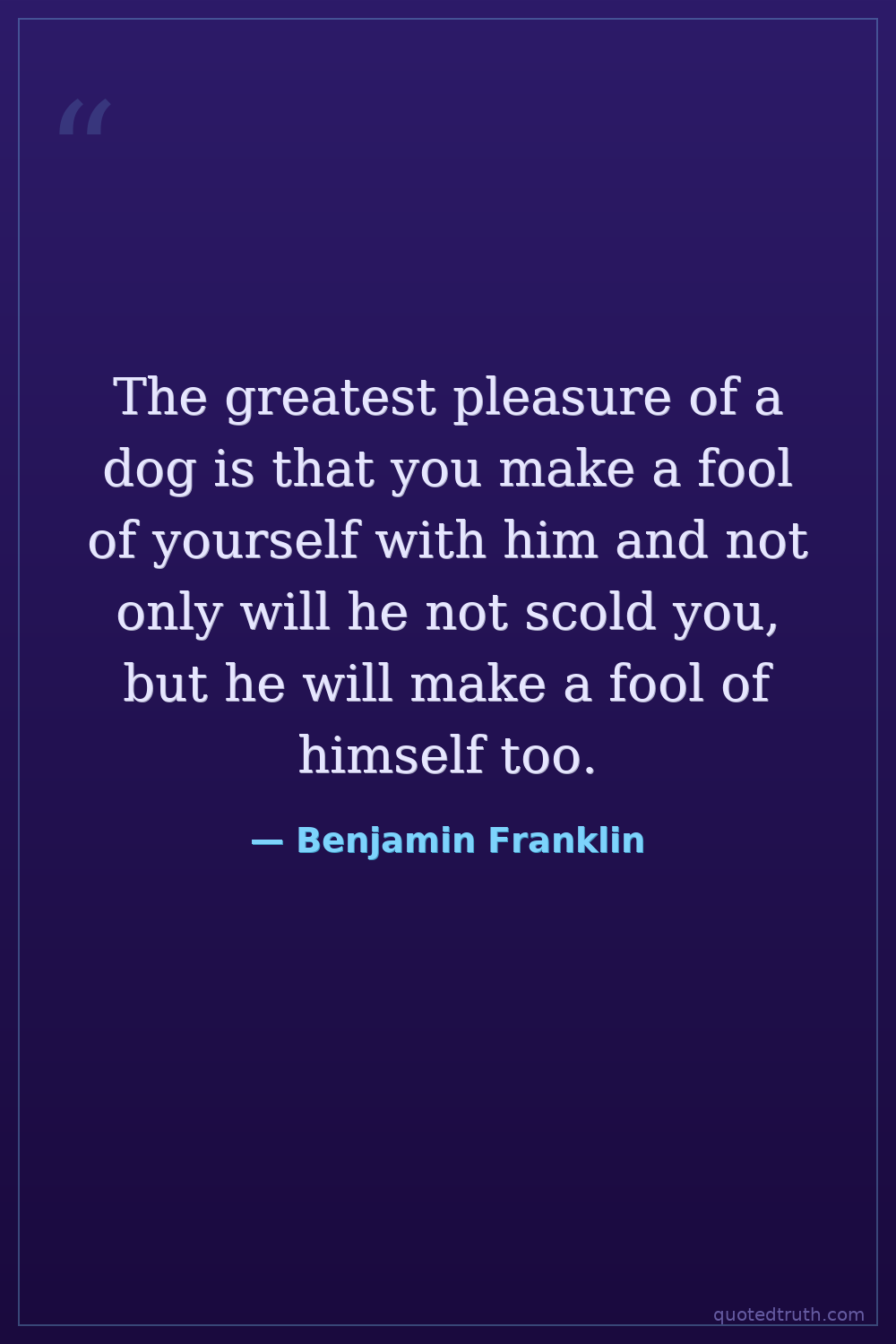 The greatest pleasure of a dog is that you make a fool of yourself with him and not only will he not scold you, but he will make a fool of himself too.