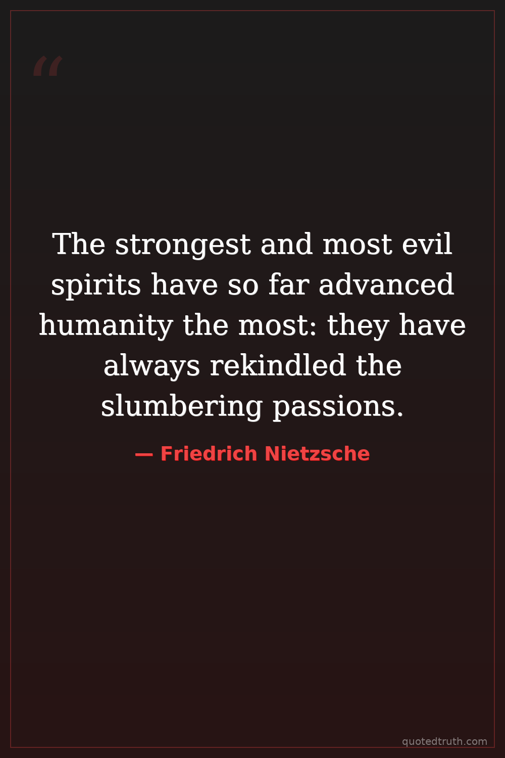 The strongest and most evil spirits have so far advanced humanity the most: they have always rekindled the slumbering passions.