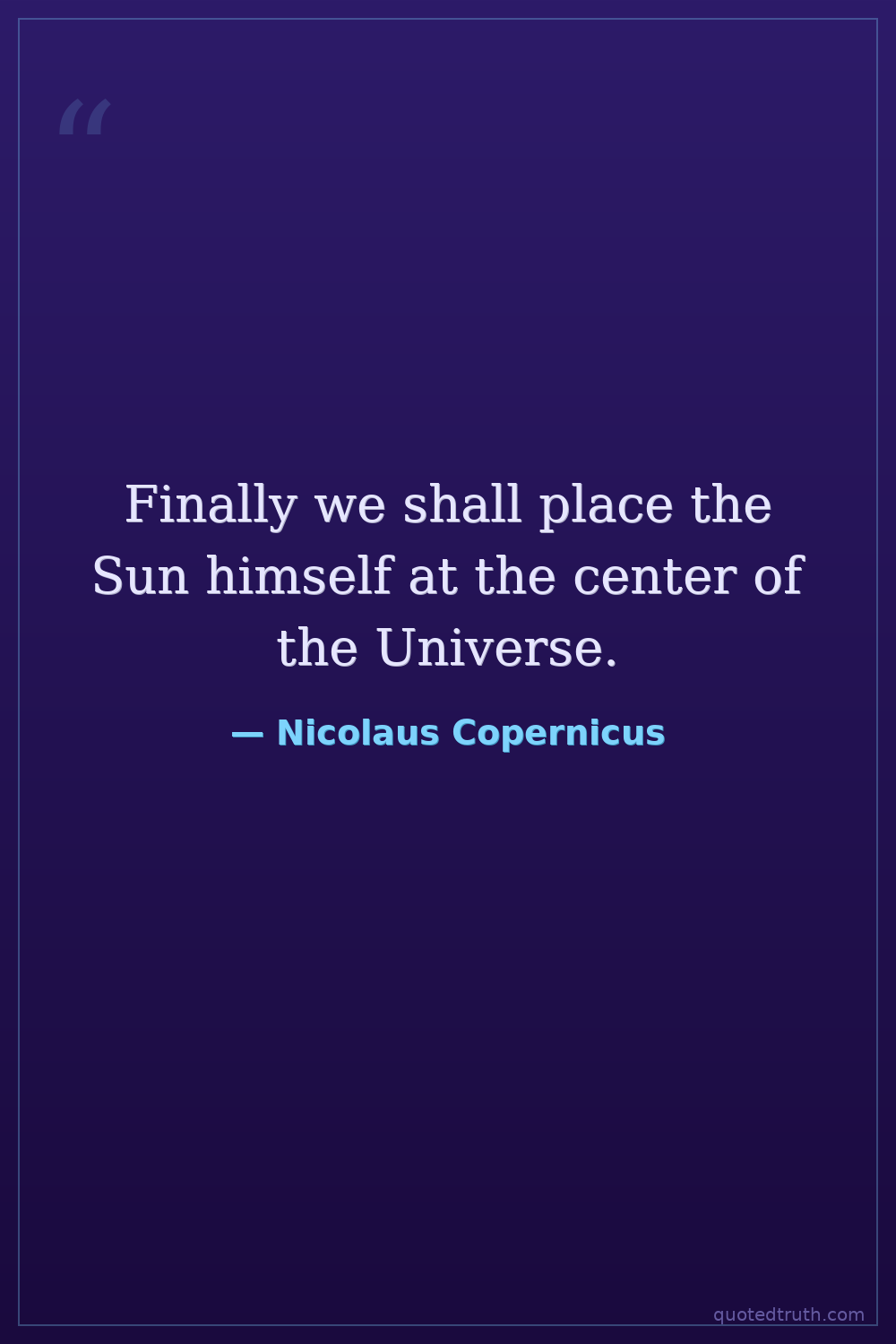 Finally we shall place the Sun himself at the center of the Universe.