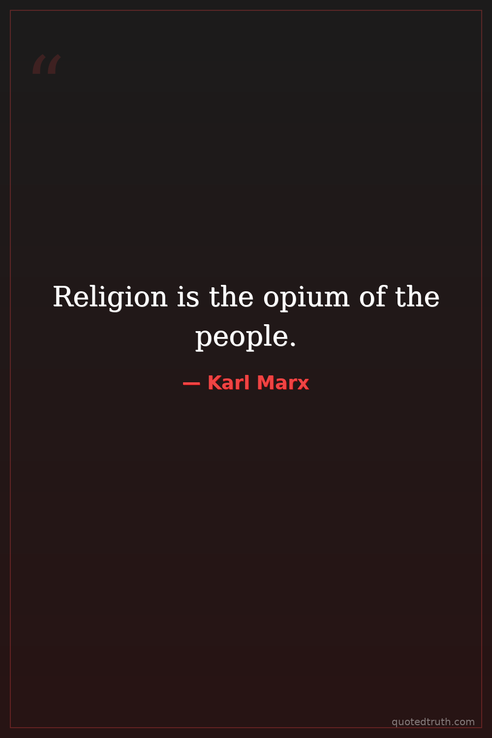 Controversial"Religion is the sigh of the oppressed creature, the heart of a heartless world, and the soul of soulless conditions. It is the opium of the people."