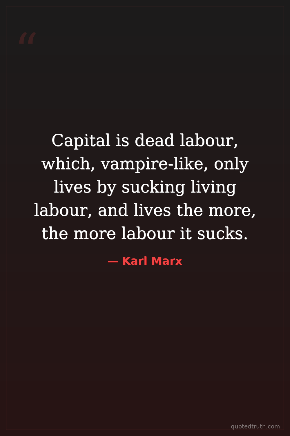 Capital is dead labour, which, vampire-like, only lives by sucking living labour, and lives the more, the more labour it sucks.