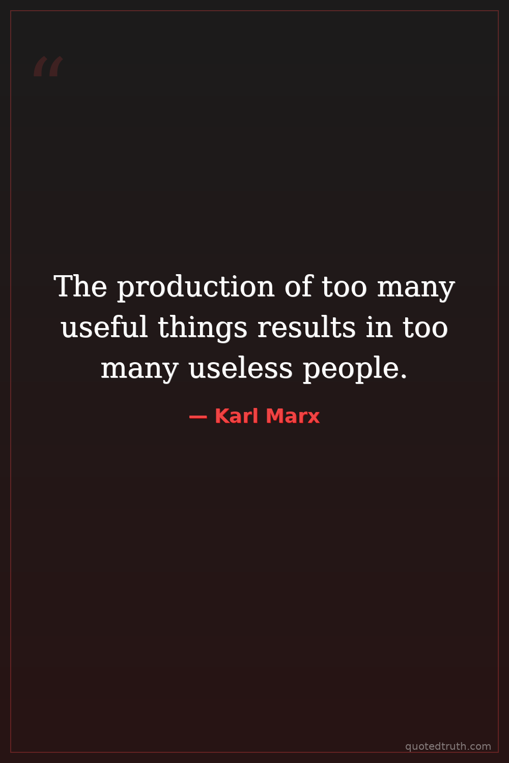 Humorous"Private property has made us so stupid and partial that an object is only ours when we have it – when it exists for us as capital, or when it is directly possessed, eaten, drunk, worn, inhabited, etc.…"