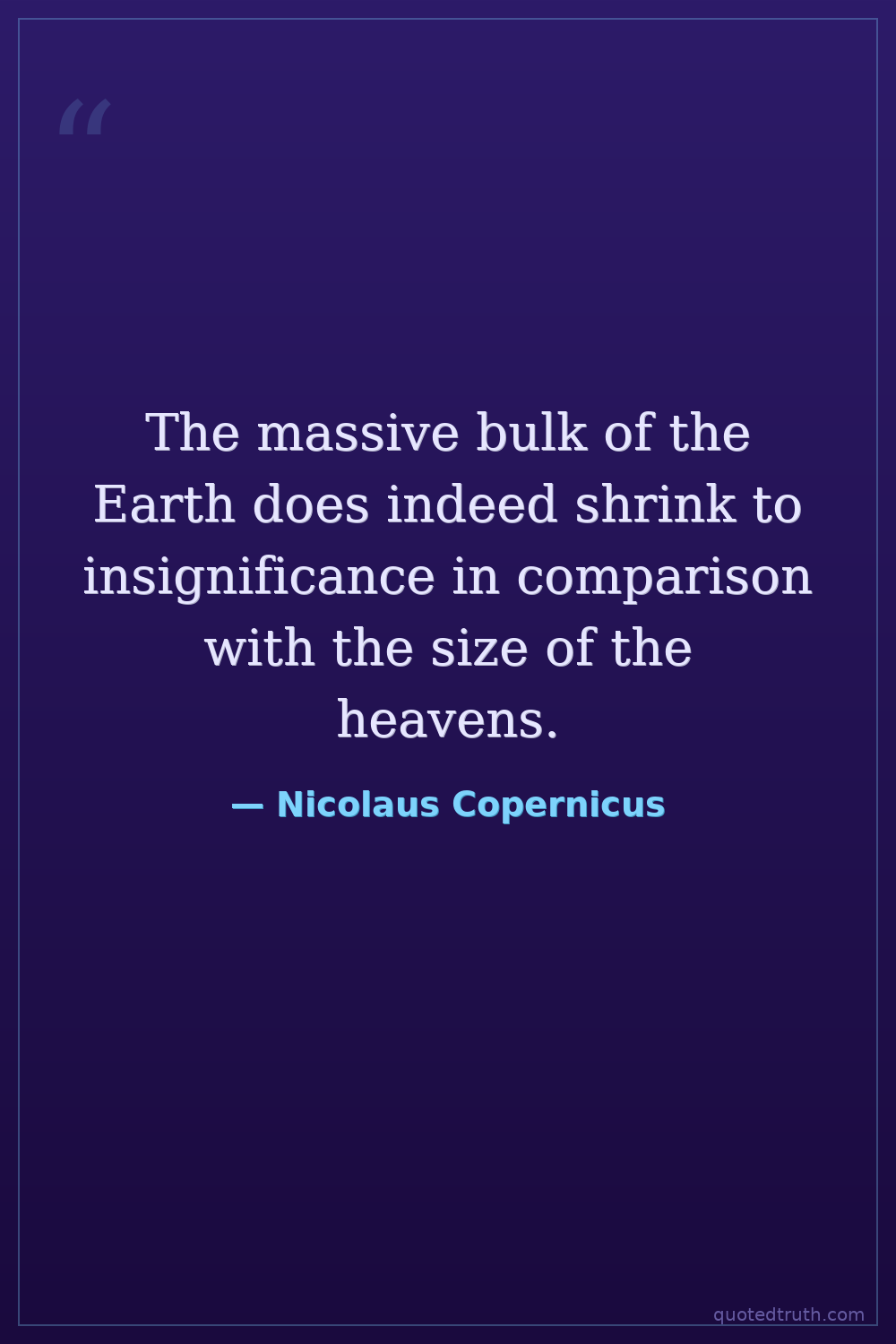 The massive bulk of the Earth does indeed shrink to insignificance in comparison with the size of the heavens.