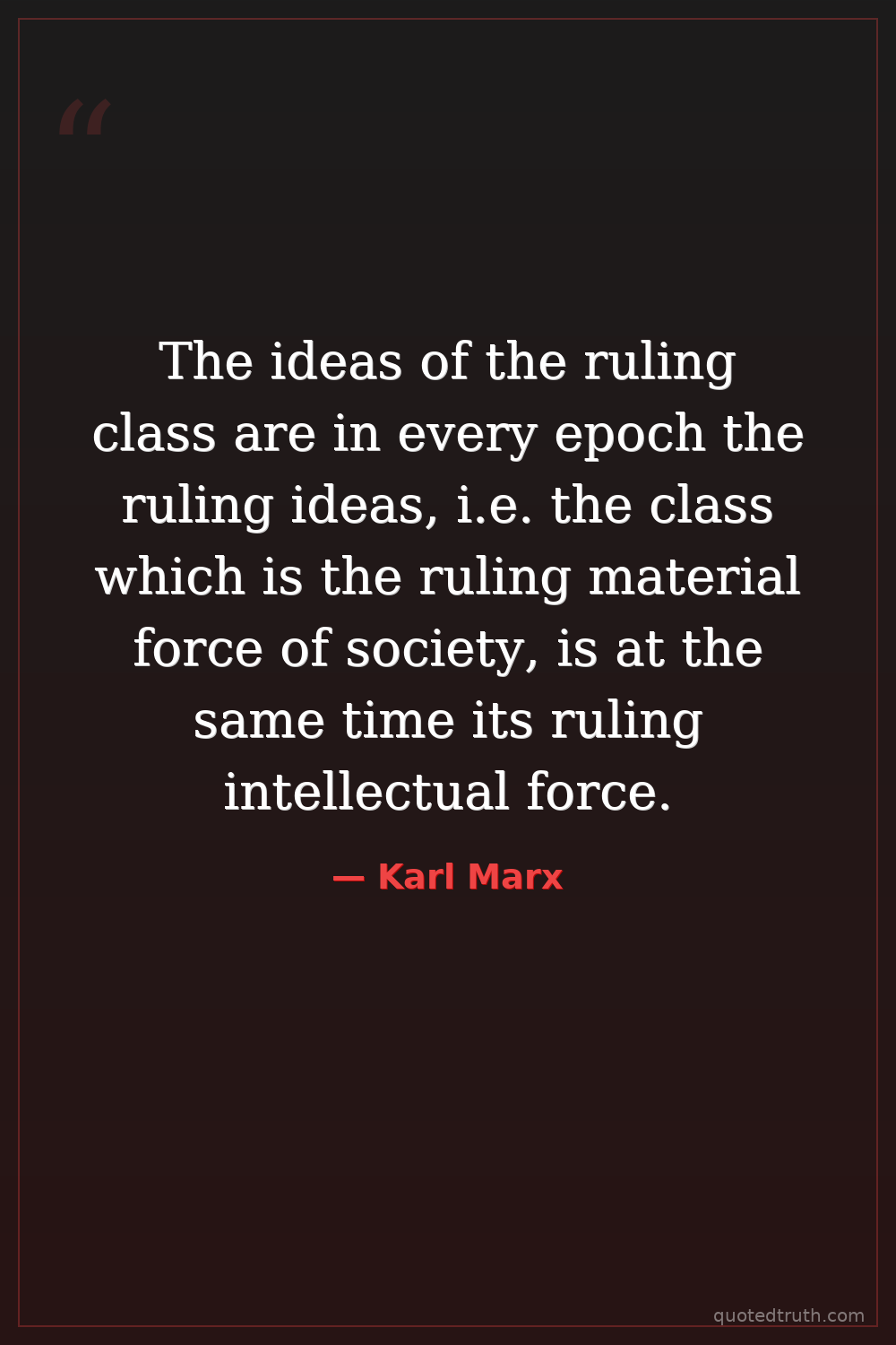 The ideas of the ruling class are in every epoch the ruling ideas, i.e. the class which is the ruling material force of society, is at the same time its ruling intellectual force.