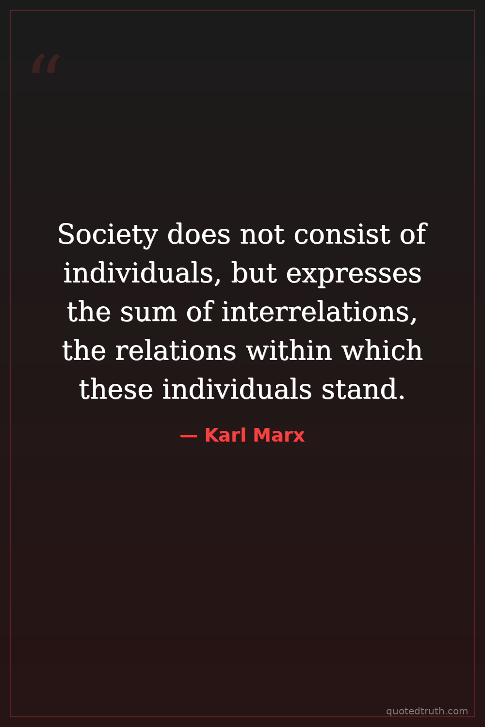 Society does not consist of individuals, but expresses the sum of interrelations, the relations within which these individuals stand.
