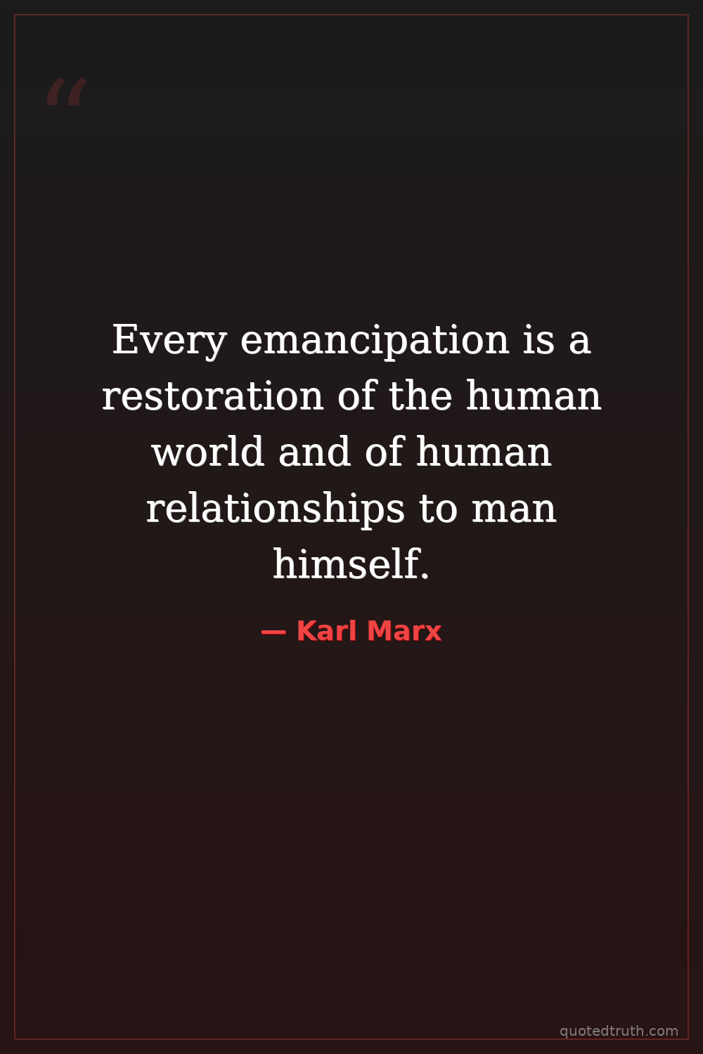 Every emancipation is a restoration of the human world and of human relationships to man himself.