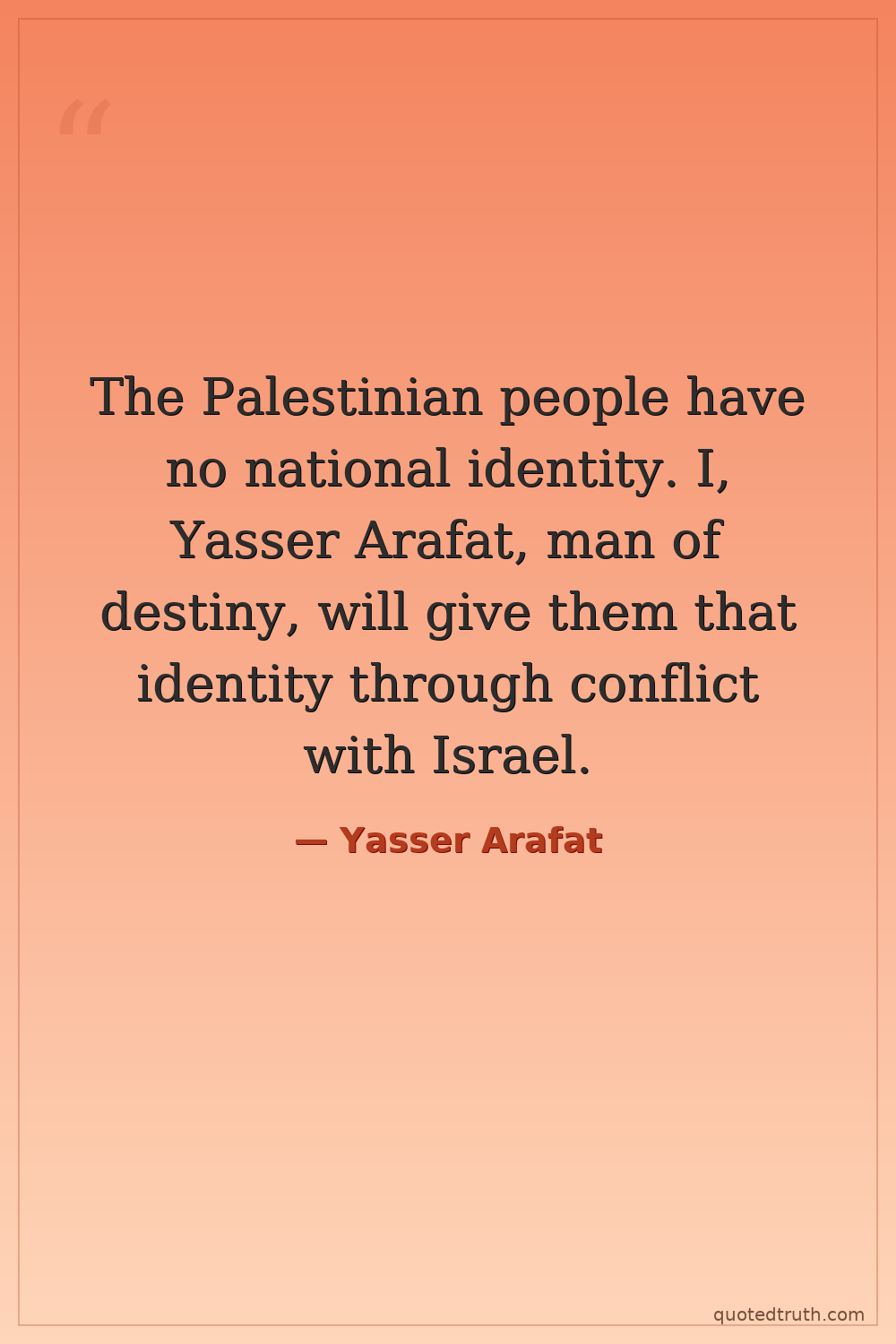 The Palestinian people have no national identity. I, Yasser Arafat, man of destiny, will give them that identity through conflict with Israel.