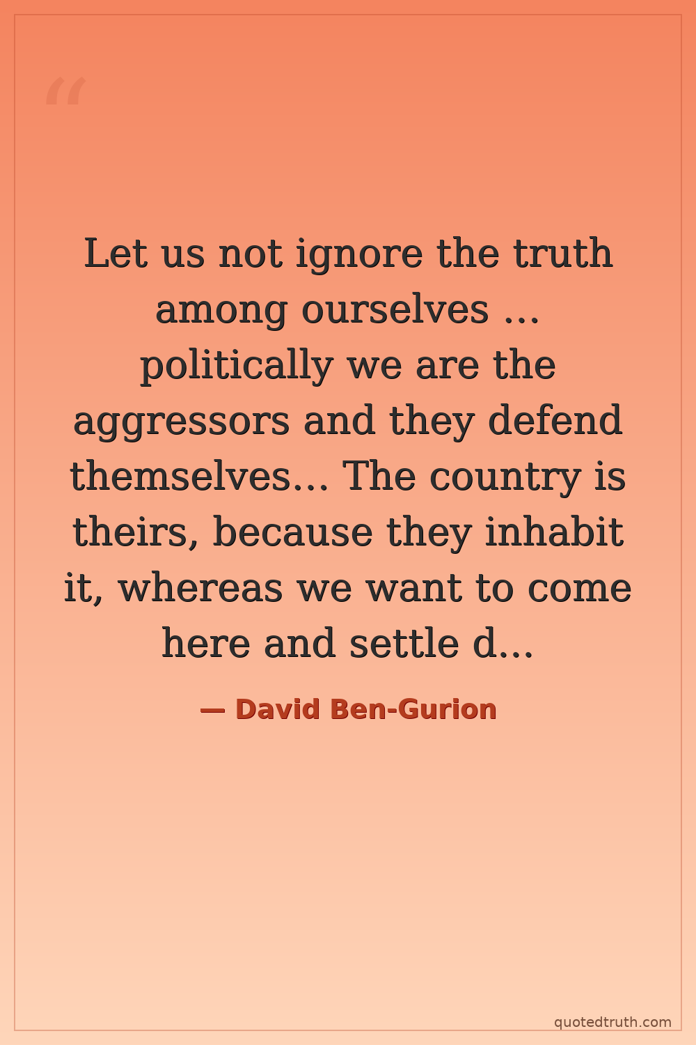 Let us not ignore the truth among ourselves … politically we are the aggressors and they defend themselves… The country is theirs, because they inhabit it, whereas we want to come here and settle down, and in their view we want to take away from them their country.