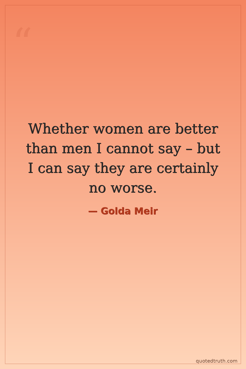 Whether women are better than men I cannot say – but I can say they are certainly no worse.