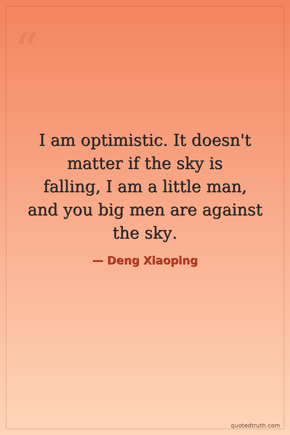 I am optimistic. It doesn't matter if the sky is falling, I am a little man, and you big men are against the sky.