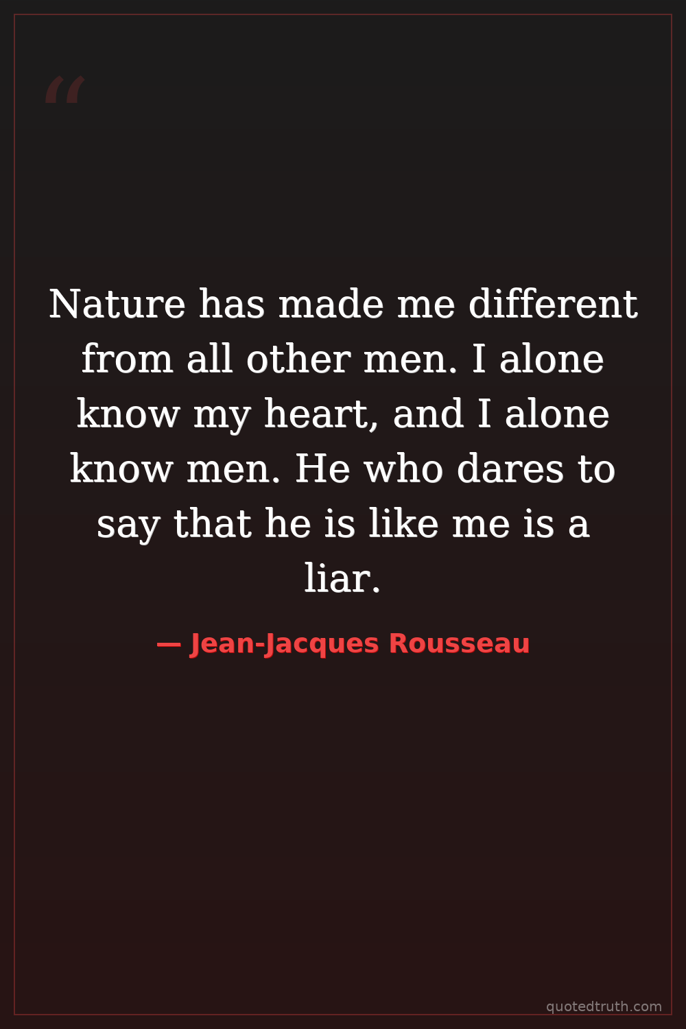 Nature has made me different from all other men. I alone know my heart, and I alone know men. He who dares to say that he is like me is a liar.