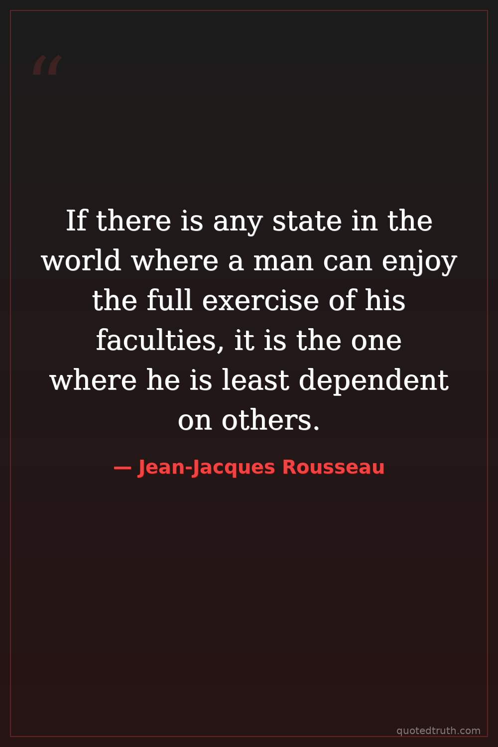 If there is any state in the world where a man can enjoy the full exercise of his faculties, it is the one where he is least dependent on others.