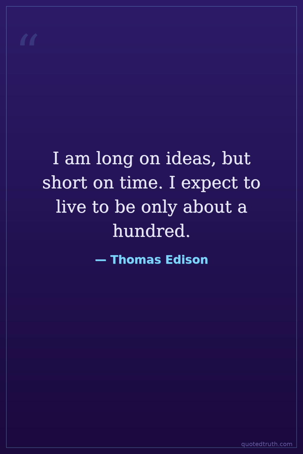 I am long on ideas, but short on time. I expect to live to be only about a hundred.