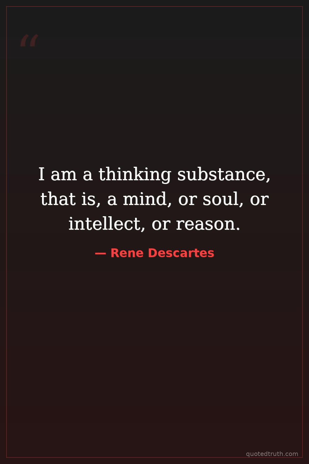 I am a thinking substance, that is, a mind, or soul, or intellect, or reason.