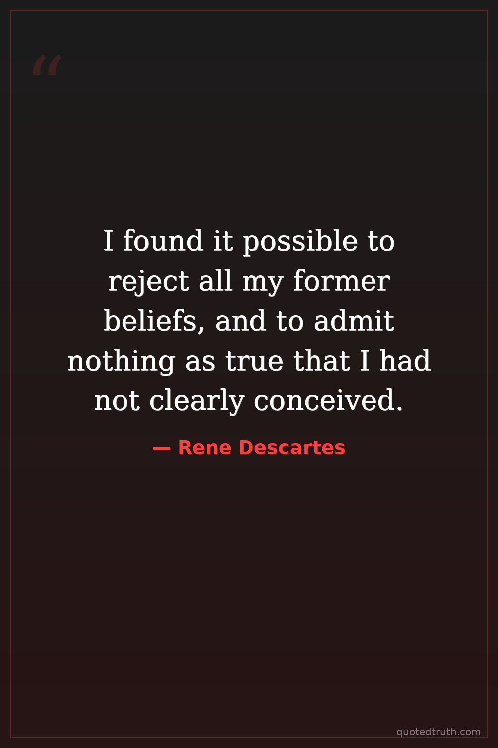 I found it possible to reject all my former beliefs, and to admit nothing as true that I had not clearly conceived.