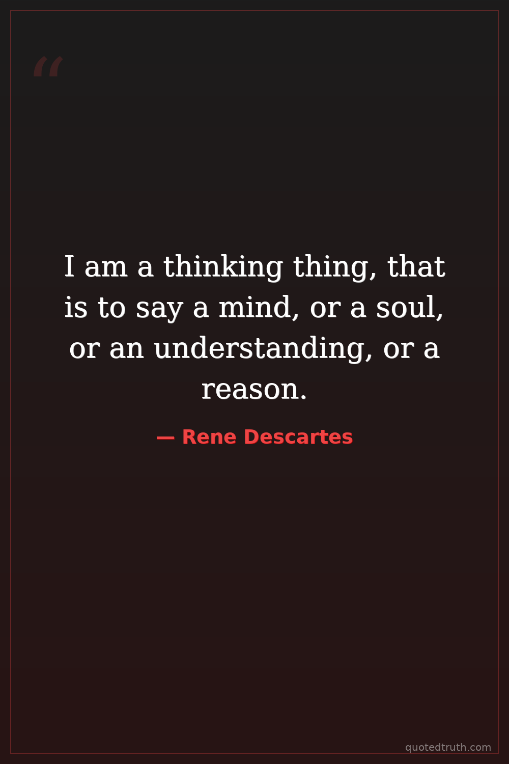 I am a thinking thing, that is to say a mind, or a soul, or an understanding, or a reason.