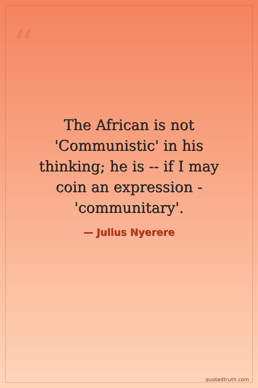 The African is not 'Communistic' in his thinking; he is -- if I may coin an expression - 'communitary'.