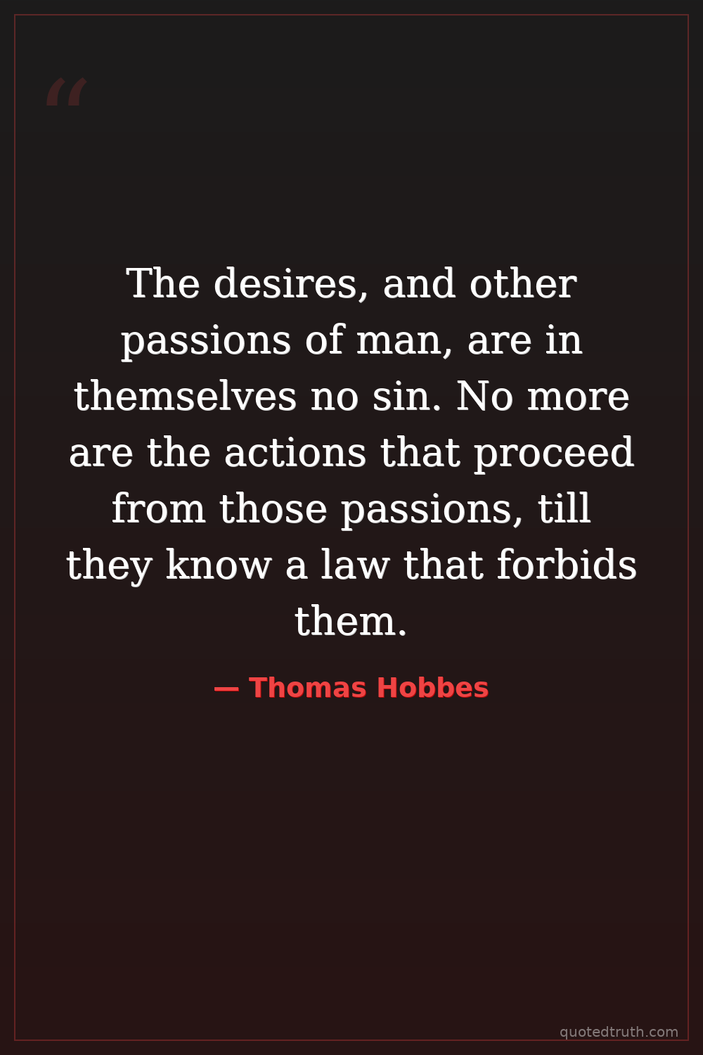 Controversial"In the first place, I put for a general inclination of all mankind, a perpetual and restless desire of power after power, that ceaseth only in death."