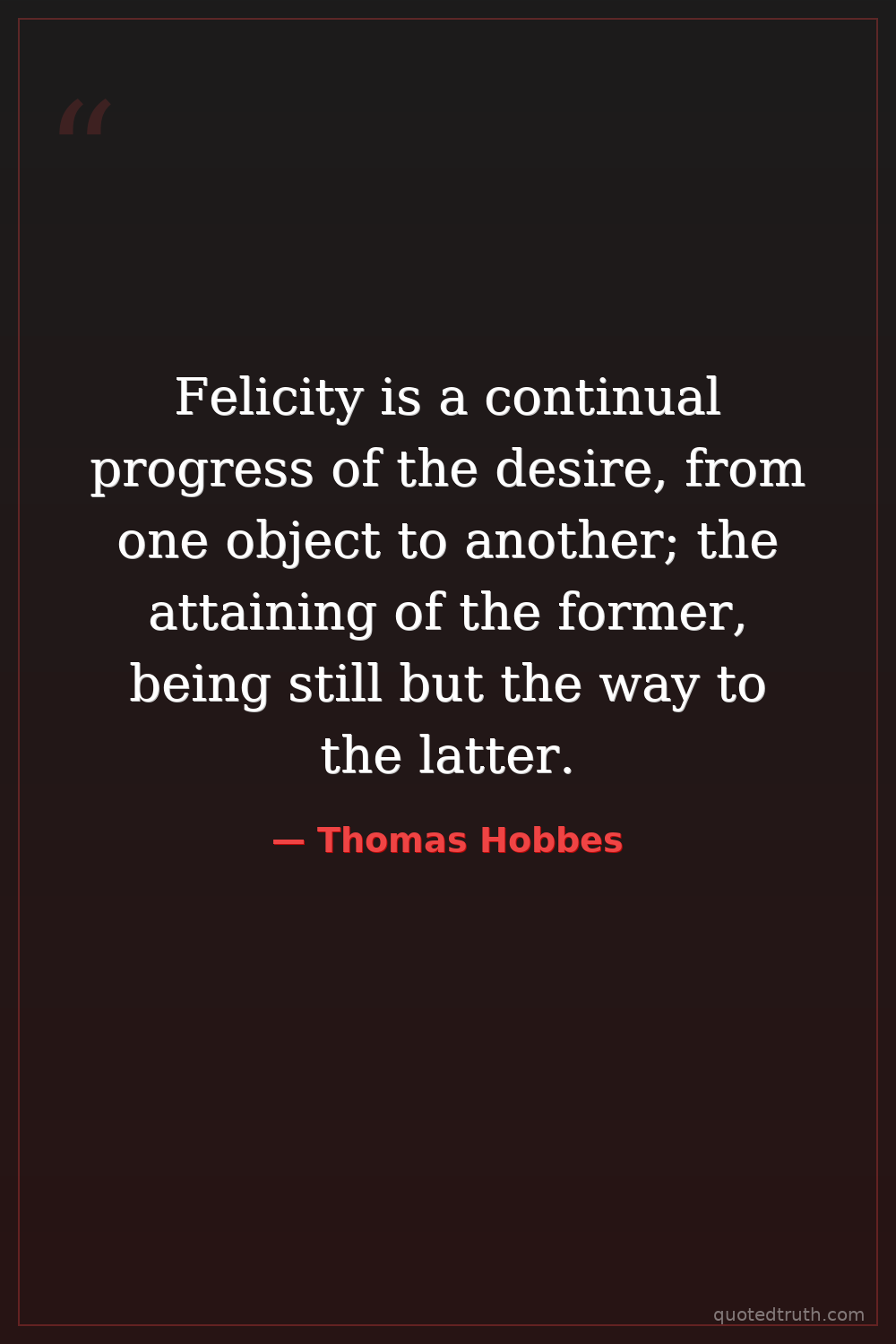 Felicity is a continual progress of the desire, from one object to another; the attaining of the former, being still but the way to the latter.