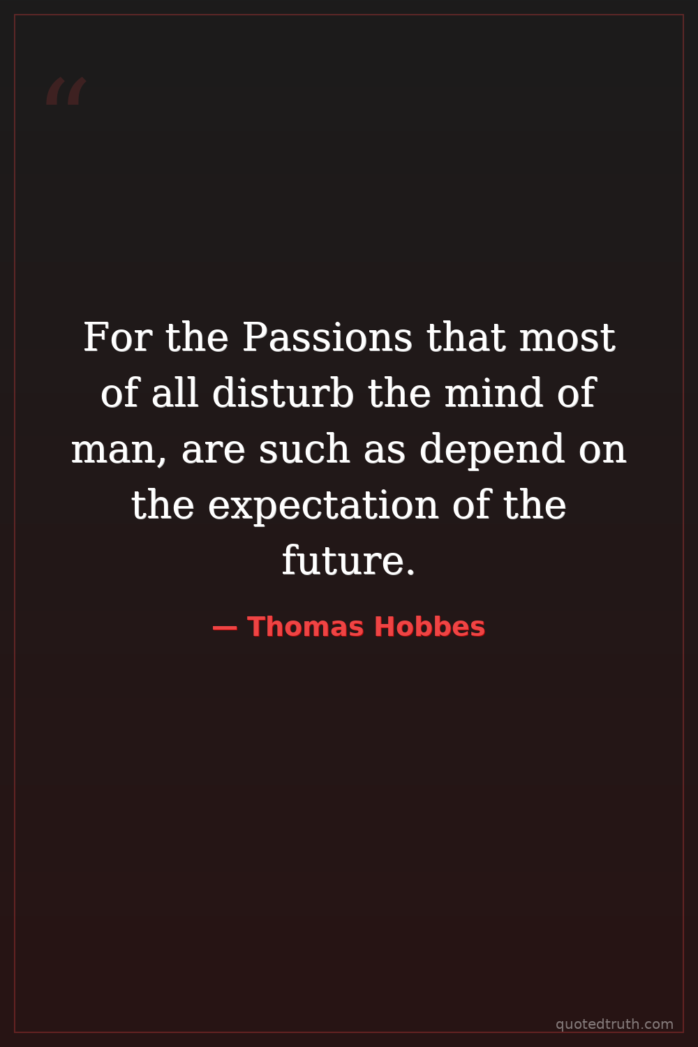 For the Passions that most of all disturb the mind of man, are such as depend on the expectation of the future.