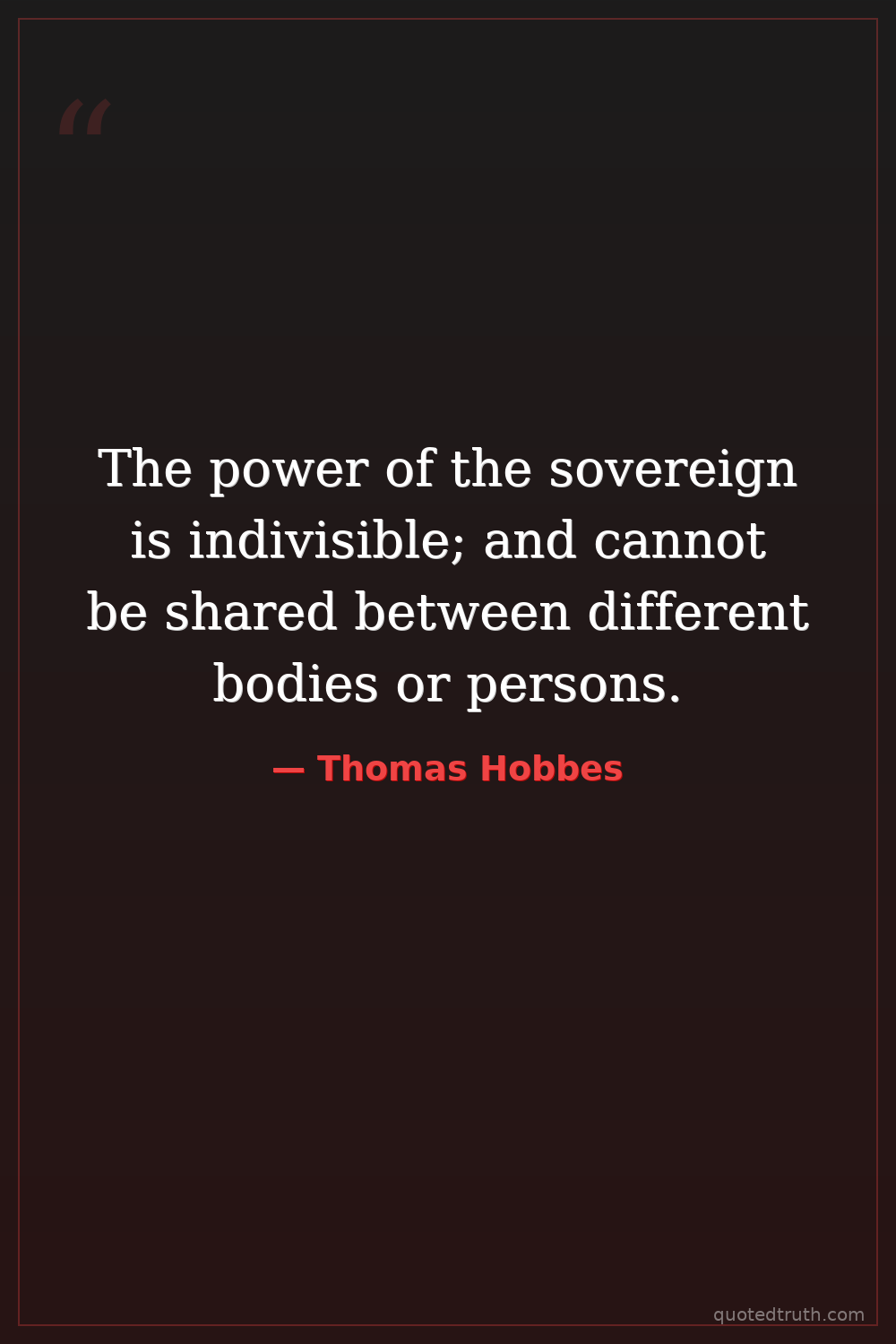 The power of the sovereign is indivisible; and cannot be shared between different bodies or persons.