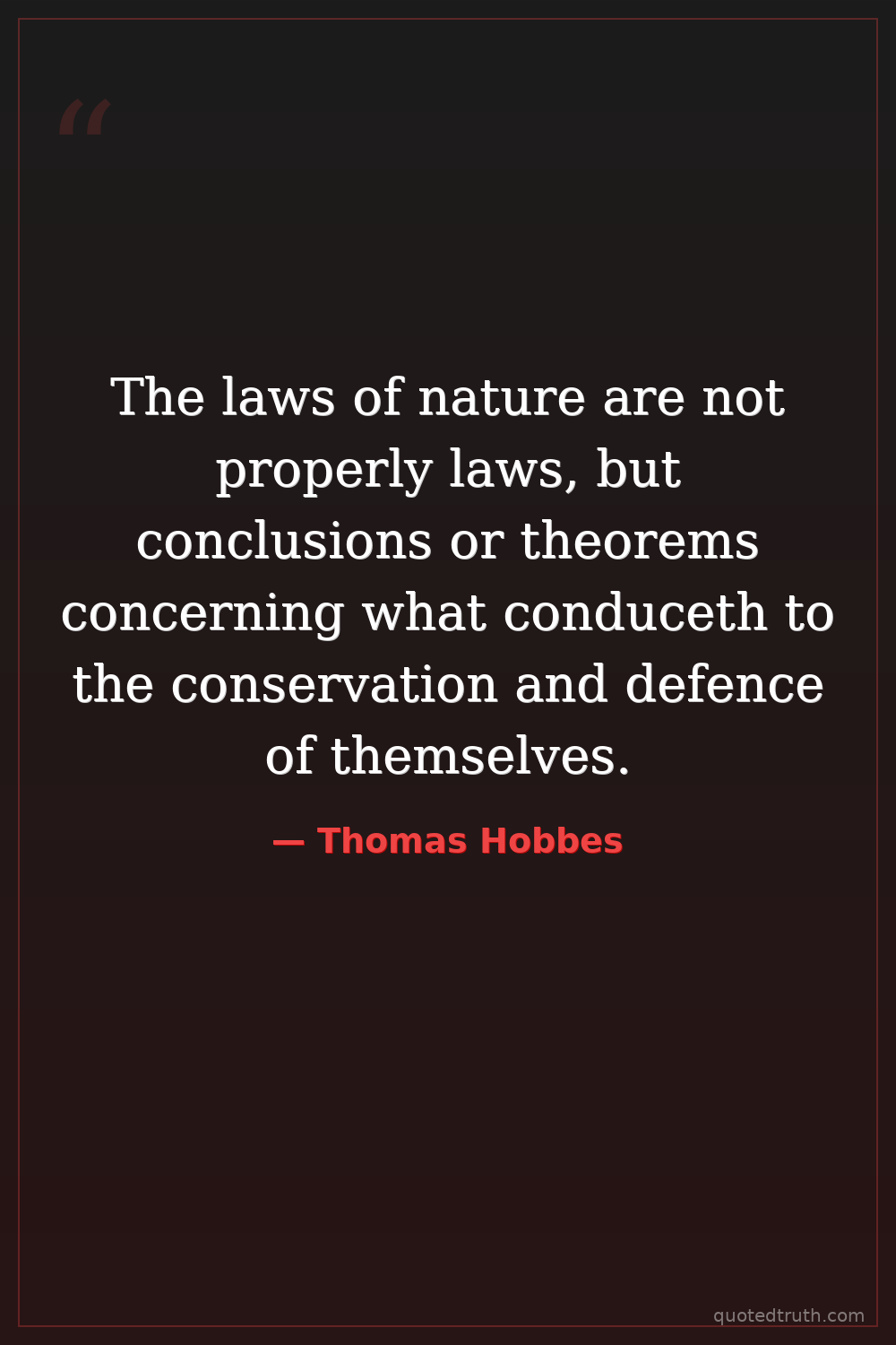 The laws of nature are not properly laws, but conclusions or theorems concerning what conduceth to the conservation and defence of themselves.