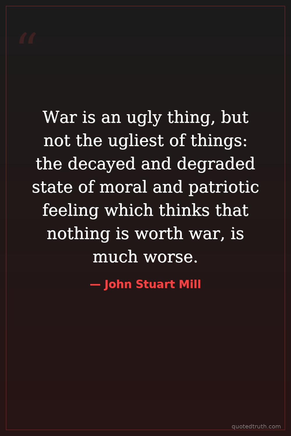 War is an ugly thing, but not the ugliest of things: the decayed and degraded state of moral and patriotic feeling which thinks that nothing is worth war, is much worse.