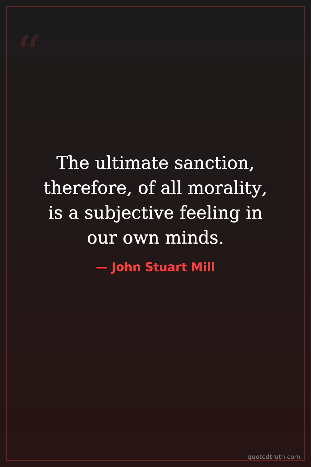 The ultimate sanction, therefore, of all morality, is a subjective feeling in our own minds.