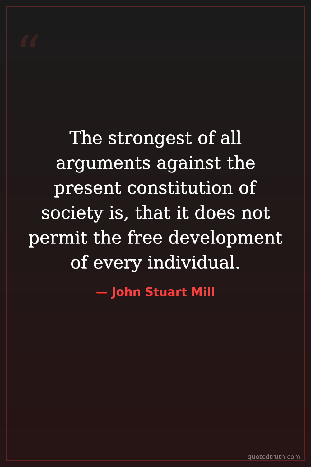 The strongest of all arguments against the present constitution of society is, that it does not permit the free development of every individual.