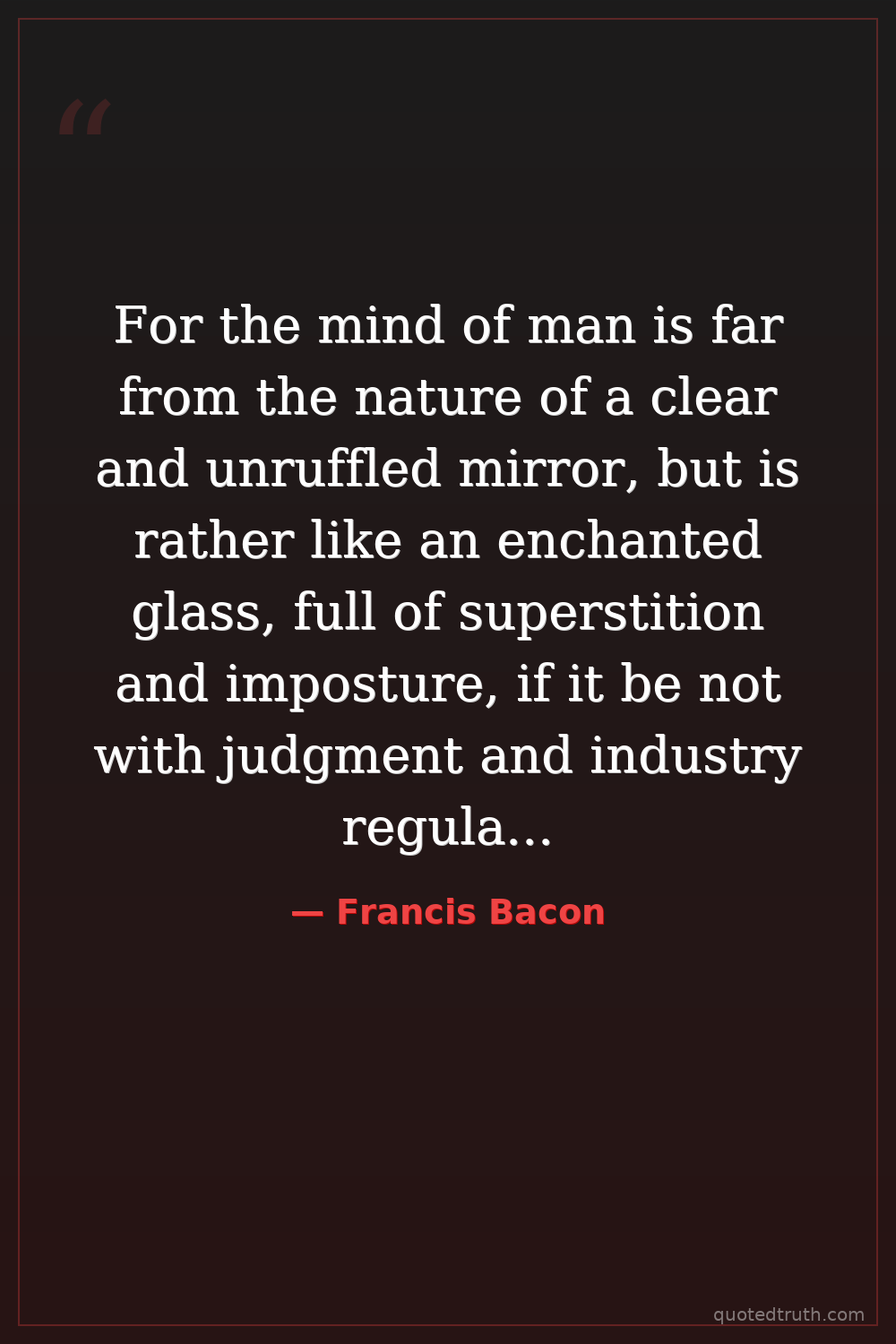 For the mind of man is far from the nature of a clear and unruffled mirror, but is rather like an enchanted glass, full of superstition and imposture, if it be not with judgment and industry regulated and cleared.
