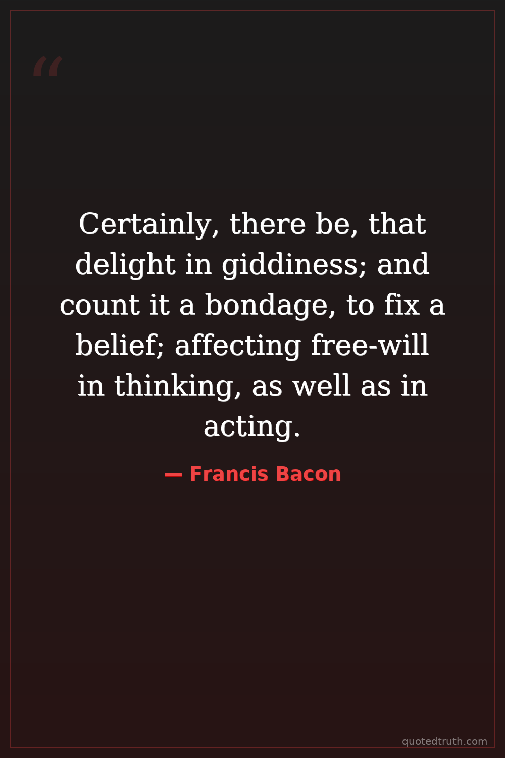 Certainly, there be, that delight in giddiness; and count it a bondage, to fix a belief; affecting free-will in thinking, as well as in acting.