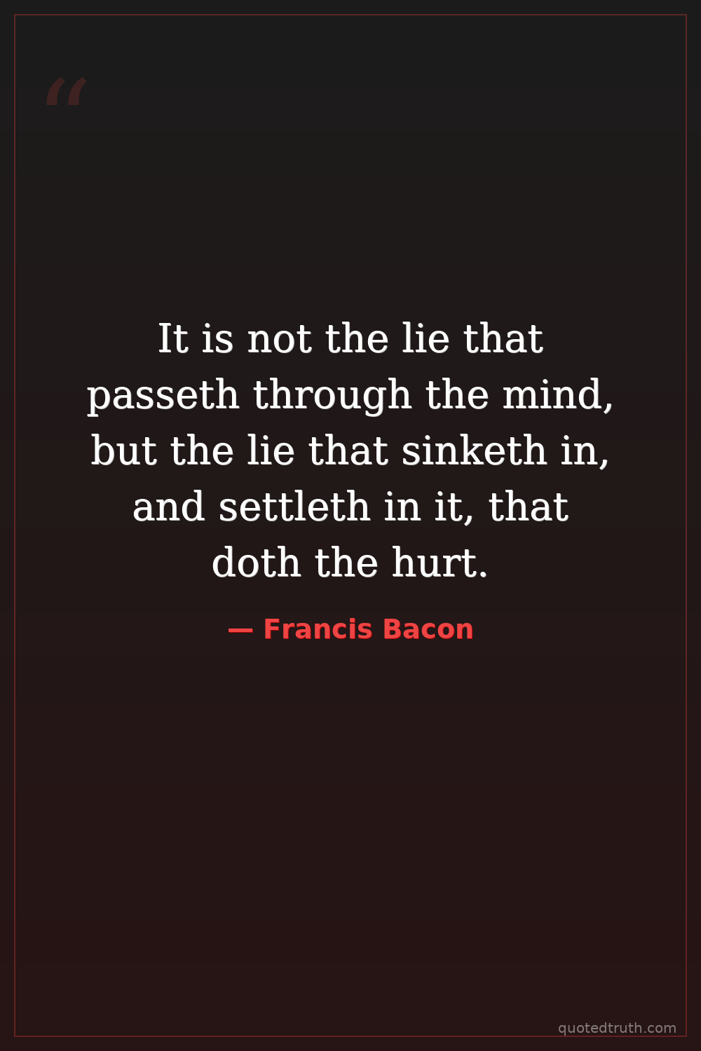 It is not the lie that passeth through the mind, but the lie that sinketh in, and settleth in it, that doth the hurt.
