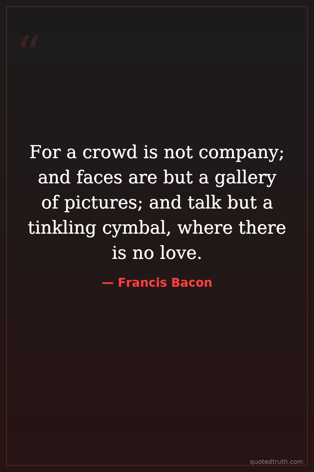 For a crowd is not company; and faces are but a gallery of pictures; and talk but a tinkling cymbal, where there is no love.