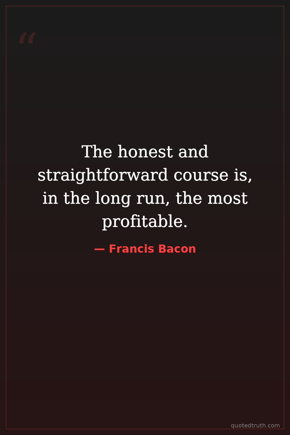 The honest and straightforward course is, in the long run, the most profitable.