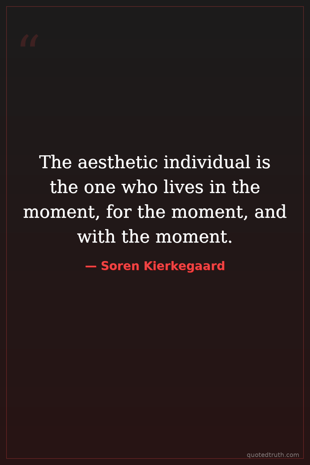 The aesthetic individual is the one who lives in the moment, for the moment, and with the moment.