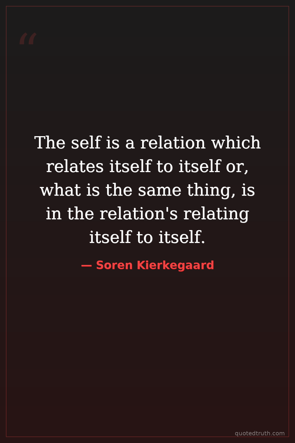 The self is a relation which relates itself to itself or, what is the same thing, is in the relation's relating itself to itself.