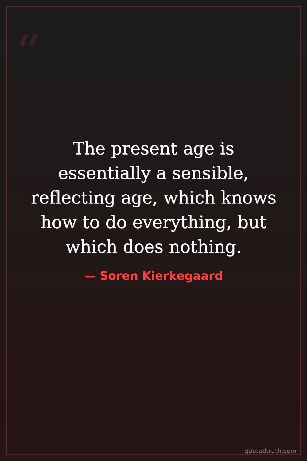 The present age is essentially a sensible, reflecting age, which knows how to do everything, but which does nothing.