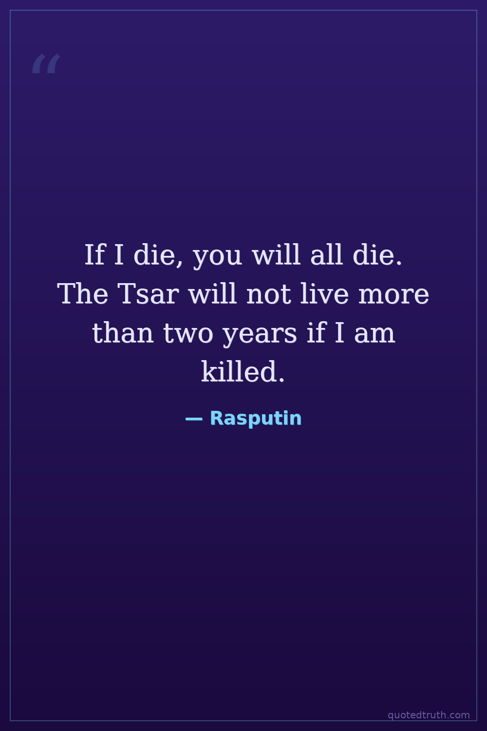 If I die, you will all die. The Tsar will not live more than two years if I am killed.