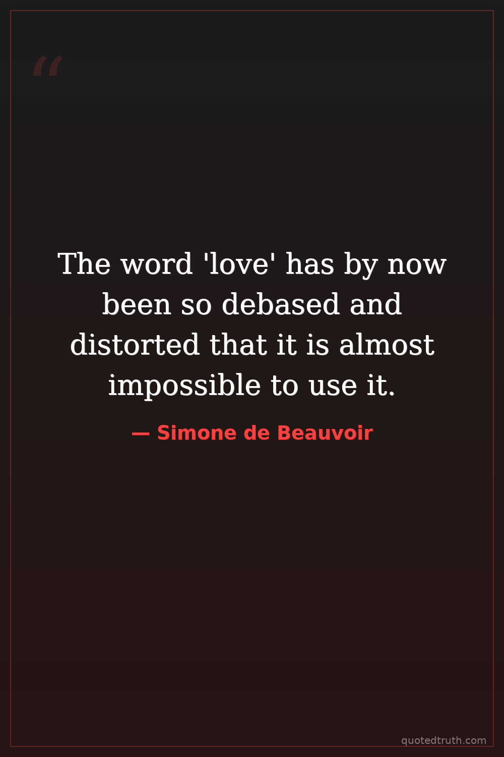The word 'love' has by now been so debased and distorted that it is almost impossible to use it.