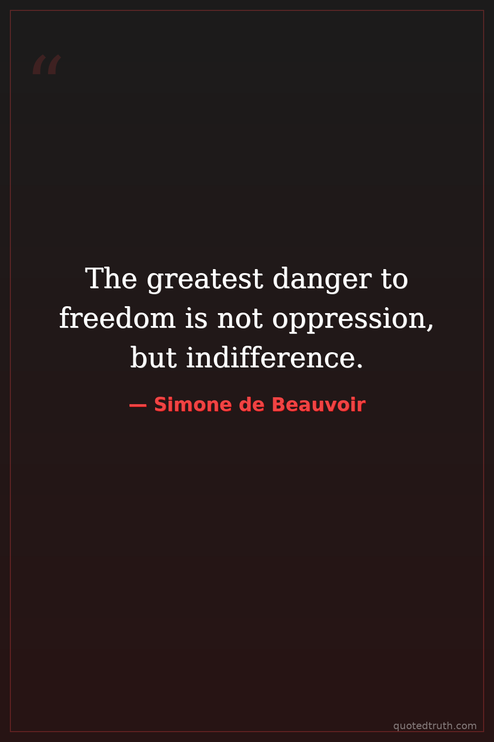 The greatest danger to freedom is not oppression, but indifference.