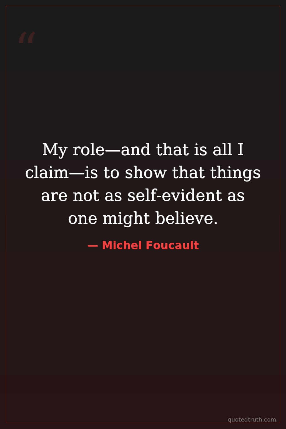 My role—and that is all I claim—is to show that things are not as self-evident as one might believe.
