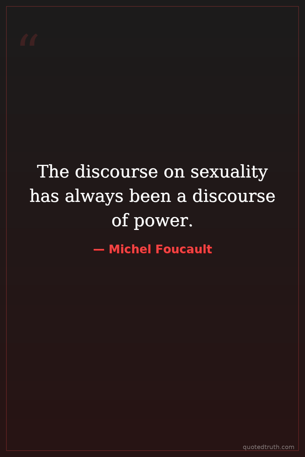 The discourse on sexuality has always been a discourse of power.