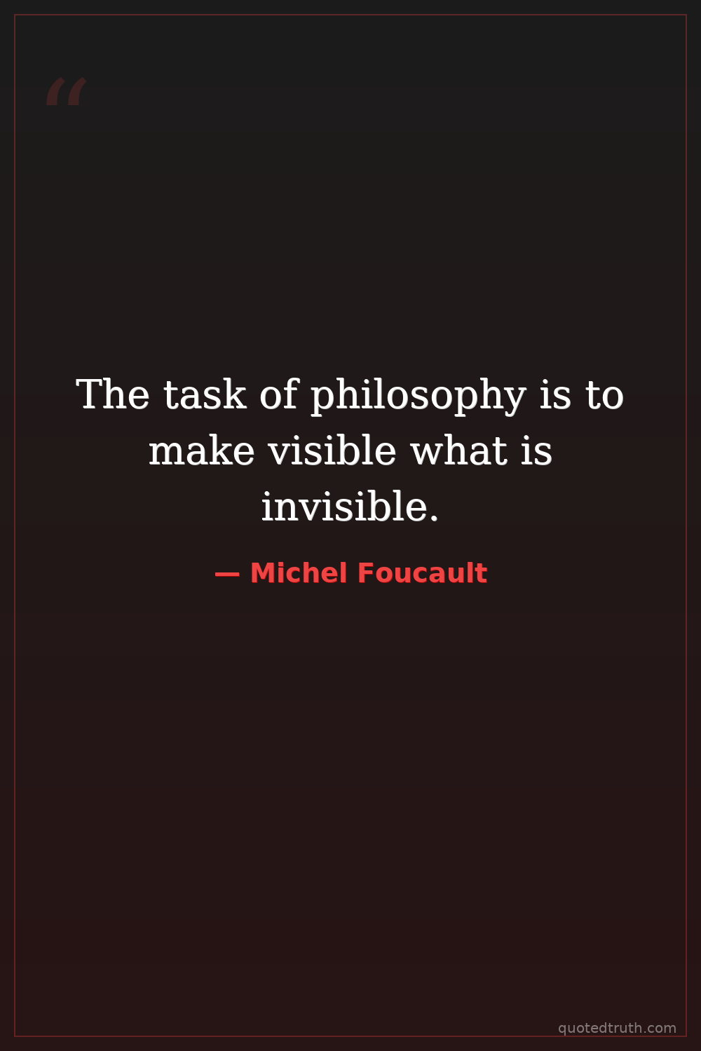 The task of philosophy is to make visible what is invisible.