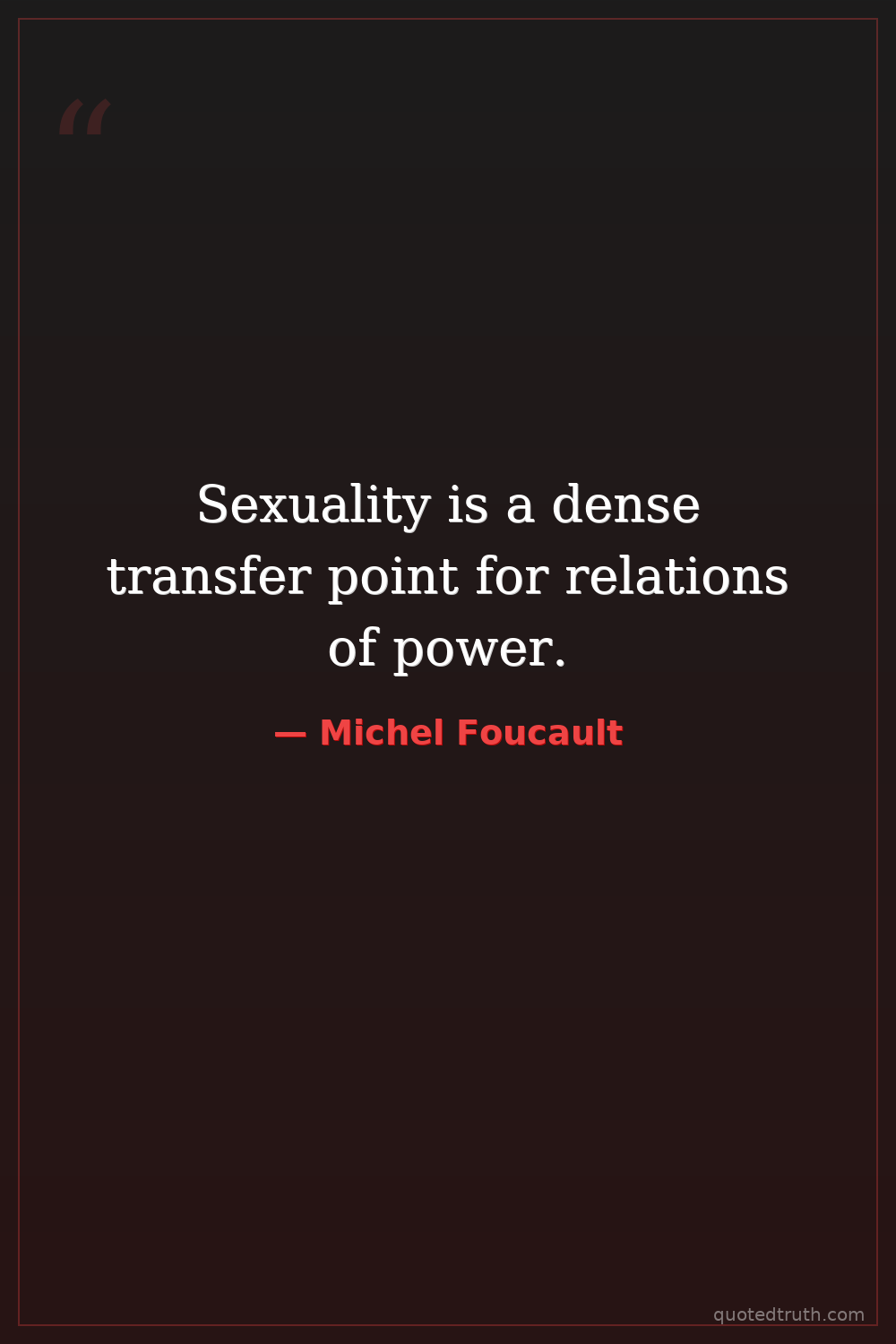 Sexuality is a dense transfer point for relations of power.