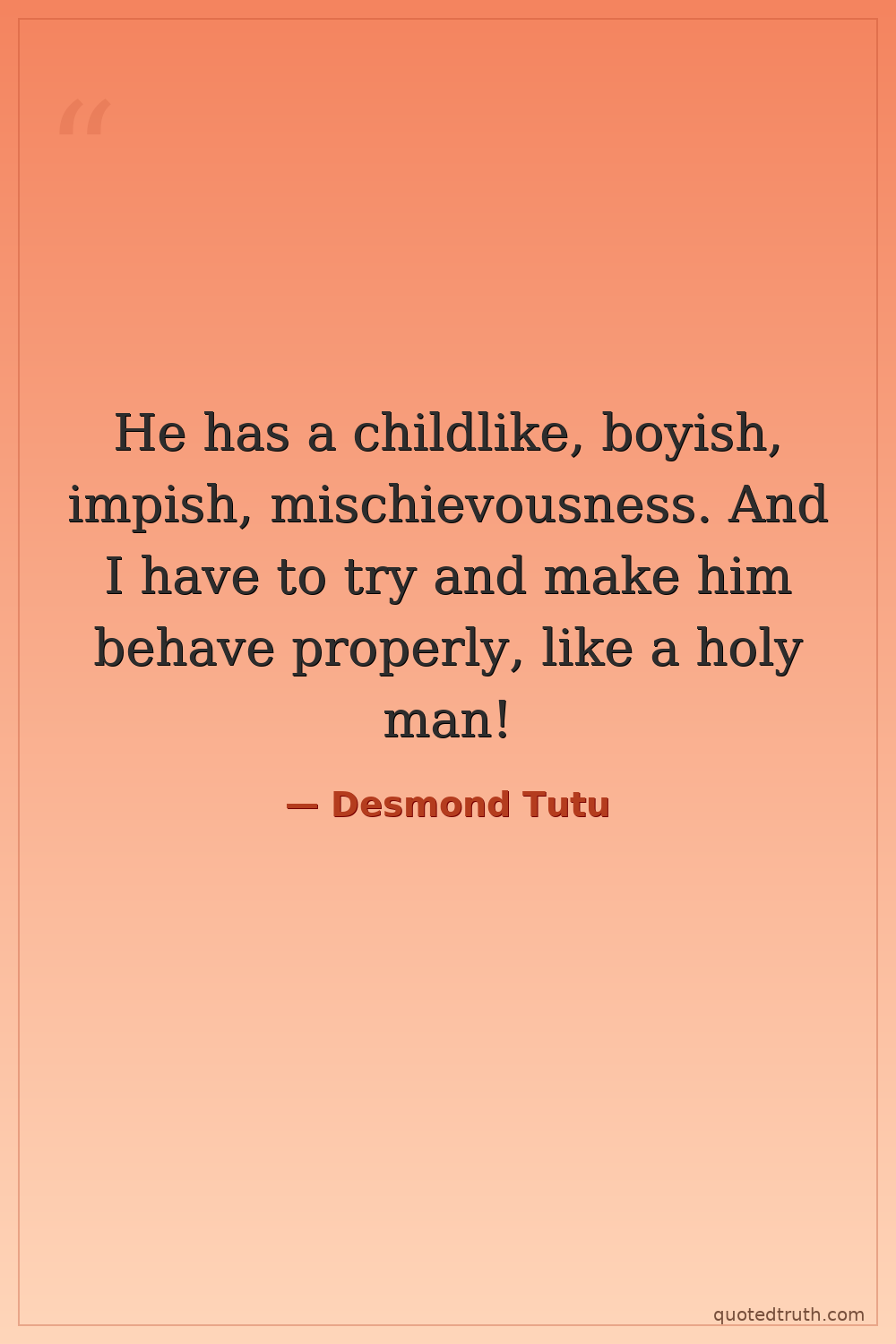 Desmond Tutu — "He has a childlike, boyish, impish, mischievousness. And I have to try and make …"