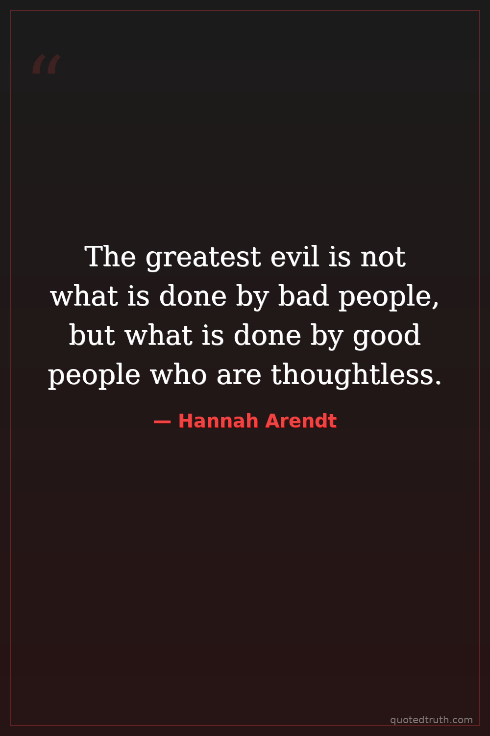 The greatest evil is not what is done by bad people, but what is done by good people who are thoughtless.