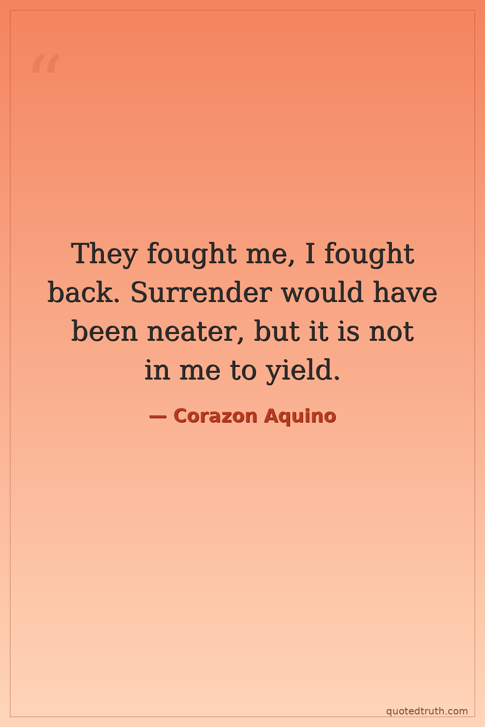 They fought me, I fought back. Surrender would have been neater, but it is not in me to yield.
