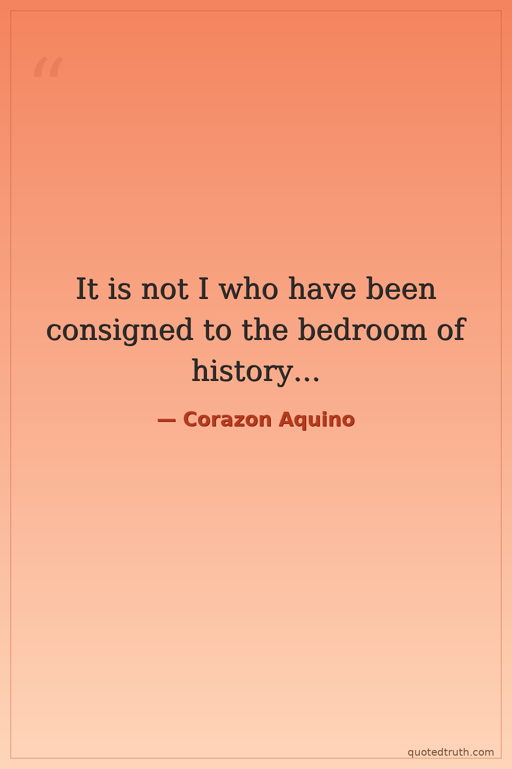It is not I who have been consigned to the bedroom of history...