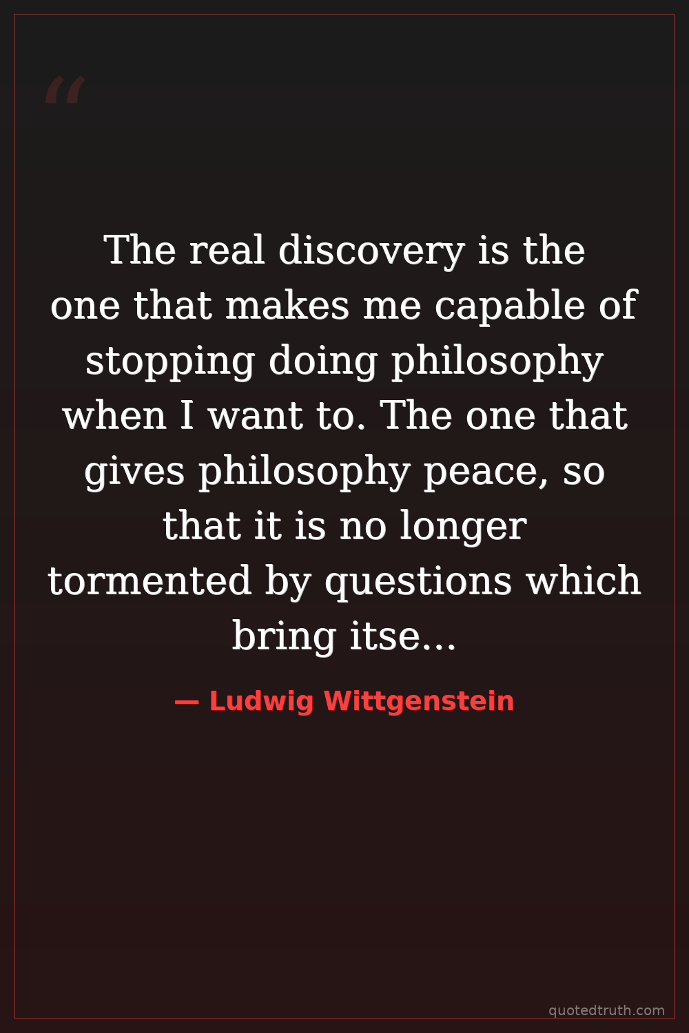 The real discovery is the one that makes me capable of stopping doing philosophy when I want to. The one that gives philosophy peace, so that it is no longer tormented by questions which bring itself in question.