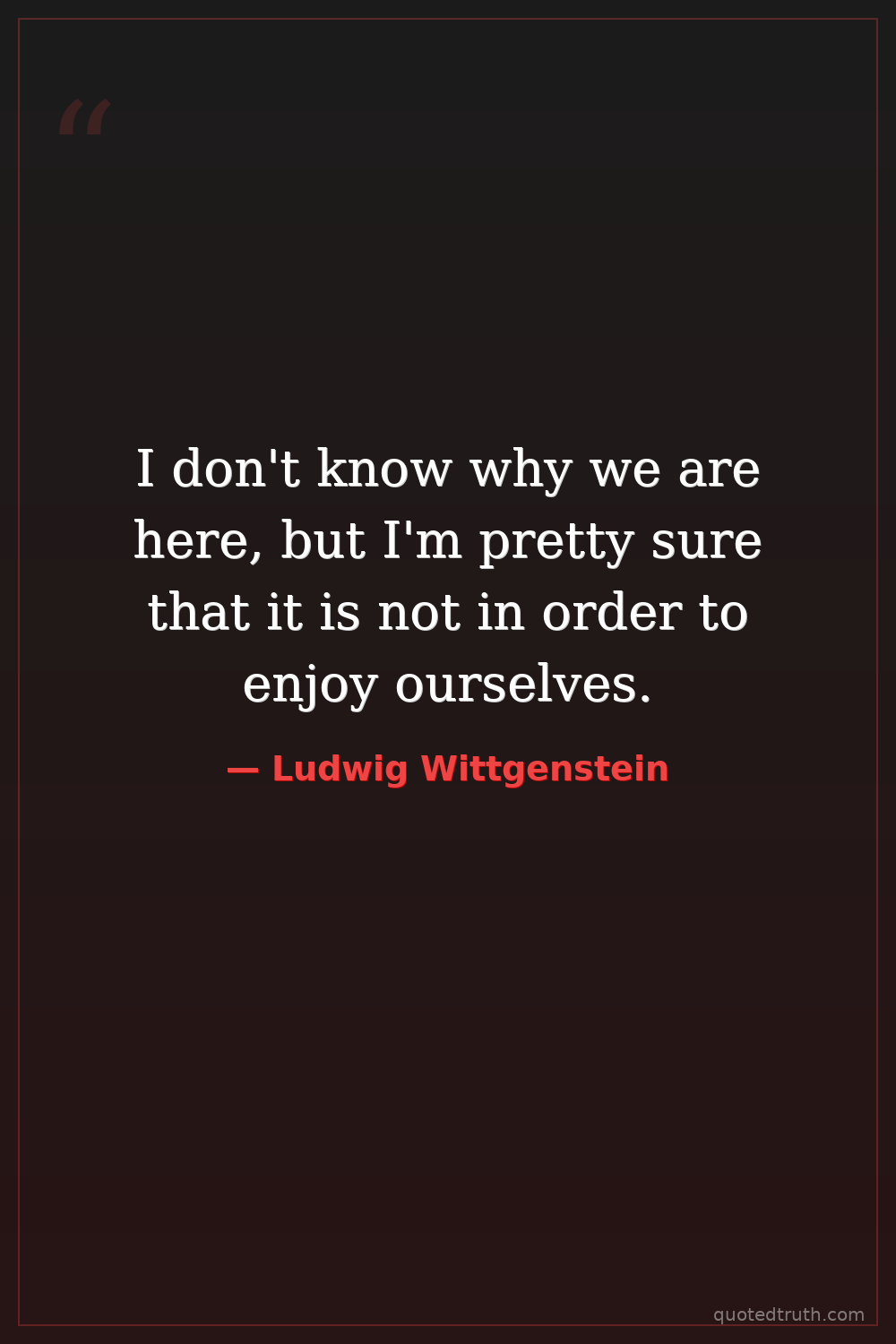 I don't know why we are here, but I'm pretty sure that it is not in order to enjoy ourselves.